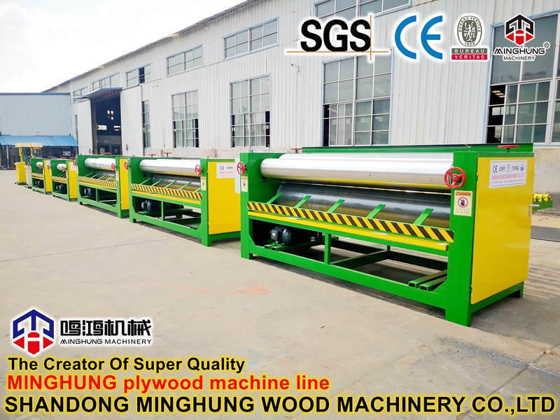 Функция распределителя клея в основном заключается в нанесении клея на обе стороны фанерного шпона, а затем рабочие укладывают их в размер фанеры.