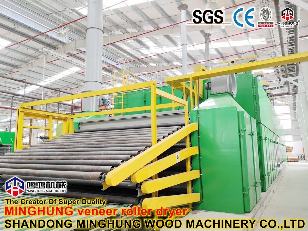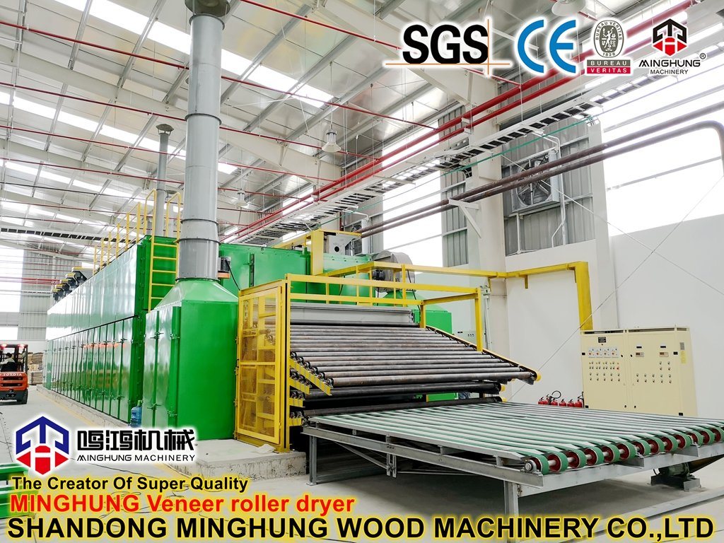 Что такое сушилка для шпона?MINGHUNG Роликовая сушилка для шпона предназначена для сушки оригинального деревянного шпона, удаления избыточной влаги, в конечном итоге влажность деревянного шпона будет составлять 5-10%, поэтому она подходит для изготовления фанеры. Валковые сушилки для шпона подходят для большой производительности сушки в день, они могут быть разной длины и ширины.