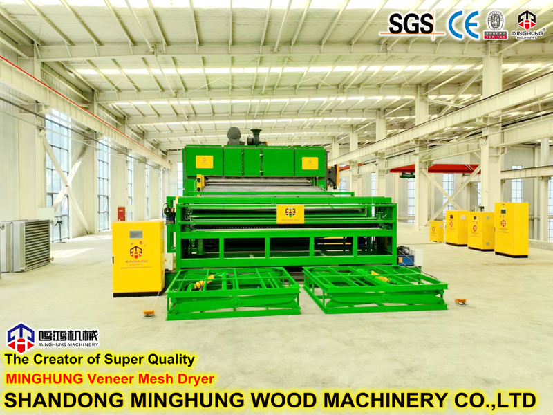 Что такое сушилка для шпона? MINGHUNG Роликовая сушилка для шпона для сушки оригинального деревянного шпона, удаления обильной влаги, в конце концов, влажность шпона будет составлять 5%-10%, поэтому она подходит для изготовления фанеры. Валик для шпона сушилки подходят для большой производительности сушки в день, могут быть разной длины, ширины