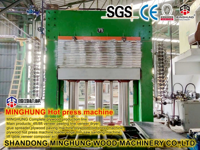 Производство различных видов фанеры, таких как мебельная фанера, строительная фанера, морская фанера, гидравлический пресс для горячего прессования является необходимой и важной машиной. А если вы производите строительную фанеру, необходимо нанесение меламина на поверхность фанеры.это потребует большего давления горячего пресса, поэтому обычно машина горячего прессования меламина 800 т в порядке и достаточно, эффект прессования очень хороший. Горячий пресс's состав не сложные, в основном состоят из: станина станка, нагревательные плиты, гидростанция, цилиндр. Это может быть разное давление и слои в зависимости от реальных условий, например 500т, 600т, 800т, 1000т, 1200т.8 слоев, 10 слоев, 12 слоев, 15 слоев, 20 слоев, 25 слоев